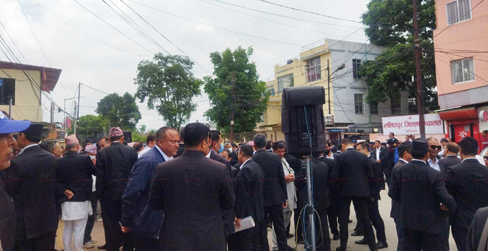 काठमान्डौ/ललितपुर जिल्ला अदालतअगाडि कानुन व्यवसायी विरोध प्रदर्शनमा उत्रिएका छन् । अधिवक्ता अमिर लामिछानेलाई पक्राउ गरिएको विरोधमा सभा आयोजना गरिएको हो । ललितपुर बार एसोसिएसनले आयोजना गरेको विरोधसभामा अधिवक्ता लामिछानेले पनि सम्बोधन गर्ने जनाइएको छ ।