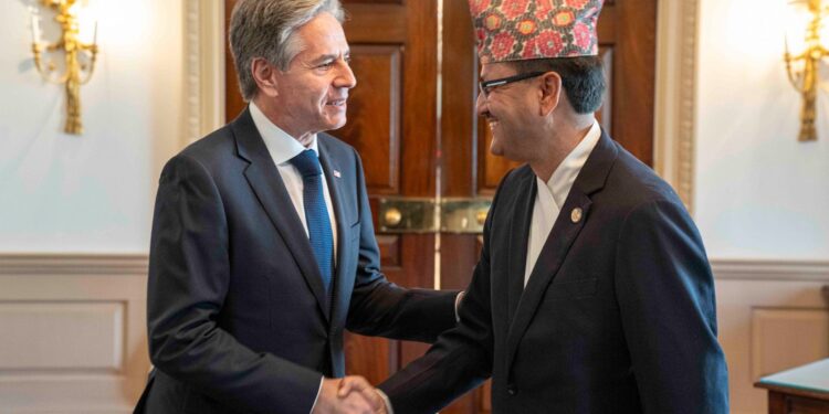 काठमान्डौ/परराष्ट्रमन्त्री नारायणप्रकाश साउद र अमेरिकी विदेशमन्त्री एन्टोनी ब्लिङ्केनबीच अमेरिकी विदेश मन्त्रालयमा गए राति द्विपक्षीय भेटवार्ता भएको छ । उक्त भेटमा विकास साझेदारी, व्यापार र बजारको पहुँच, लगानी र प्रविधि, कृषि र खाद्य सुरक्षालगायतका विषयमा महत्त्वपूर्ण छलफल भएको थियोे ।