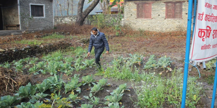 काठमान्डौ/म्याग्दीको मङ्गला गाउँपालिकाका जनप्रतिनिधि र कर्मचारीले श्रमदान गरेर बाँझो जमिनलाई करेसाबारीमा रूपान्तरण गरेका छन् ।