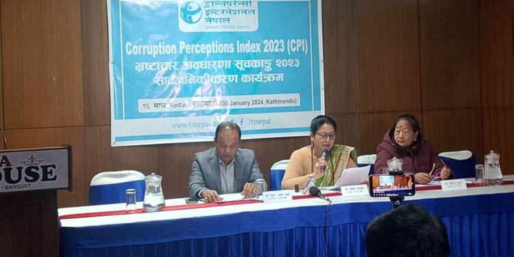 ट्रान्सपरेन्सी इन्टरनेसनल नेपालले मंगलबार सार्वजनिक गरेको भ्रष्टाचार अवधारणा सूचकांक ९सीपीआई० २०२३ मा १०० मा ३५ अंक पाएर नेपाल १०८औँ स्थानमा परेको हो ।