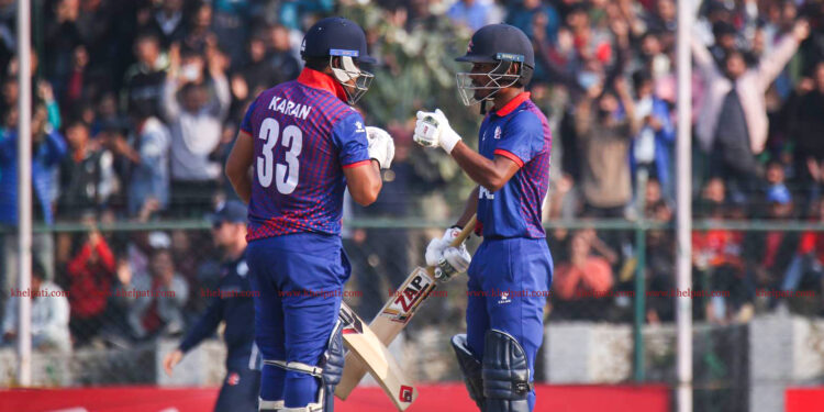 नामिबियाविरुद्ध नेपालले ब्याटिङ गर्दै