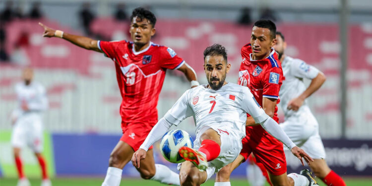 काठमान्डौ/फिफा विश्वकप २०२६ र एएफसी एसियन कप २०२७ को संयुक्त छनोट अन्तर्गत दोस्रो चरणको खेलमा नेपाल बहराइनसँग ५-० ले पराजित भएको छ । बहराइन राष्ट्रिय रंगशालामा भएको खेलमा घरेलु टोली ५-० ले विजयी भएको हो। बहराइनले खेलको पहिलो हाफमा ३ गोल गरेको थियो भने दोस्रो हाफमा २ गोल गरेको थियो।