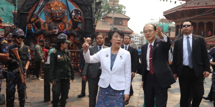 काठमान्डौ/आज नेपाल आउनुभएका जापानका विदेश मन्त्री खामिखावा योकोले आजै दिउँसो काठमाडौँको वसन्तपुर क्षेत्रको अवलोकन गर्नुभएको छ ।