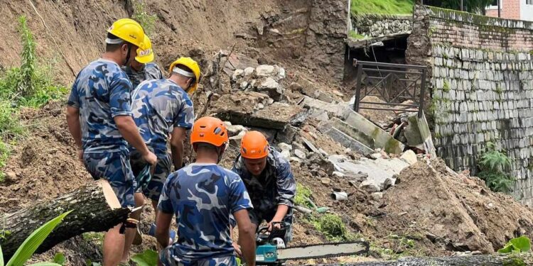 काठमान्डौ/भक्तपुरको चाँगुनारायण नगरपालिका–६ नगरकोटमा पहिरोको कारण अवरुद्ध सडक सशस्त्र प्रहरीले डोजरको सहायतामा खुलाउने कार्य भइरहेको छ ।