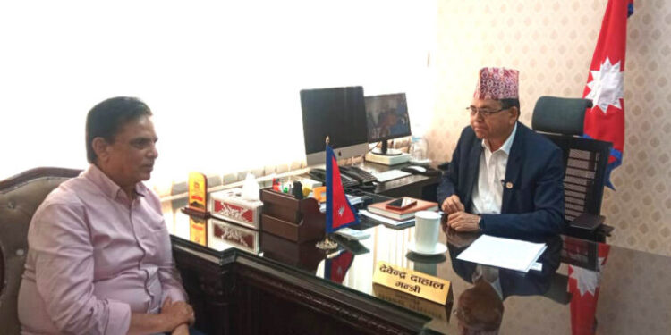 काठमान्डौ/भौतिक पूर्वाधार तथा यातायातमन्त्री देवेन्द्र दाहाल र वरिष्ठ कलाकार हरिवंश आचार्यबीच आज छलफल भएको छ । सिंहदरबारस्थित मन्त्रालयमा उहाँहरुबीच विकास निर्माण र सरकारका कामलाई कसरी जनमुखी तथा प्रभावकारी बनाउन सकिन्छ भन्ने बारेमा छलफल भएको हो ।