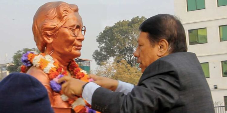 उपप्रधानमन्त्री सिंहले नेपाल महिला संघकी संस्थापक अध्यक्ष मंगलादेवी सिंहकाे शालिकमा माल्यार्पणपछि सञ्चारकर्मीहरूसँग कुराकानी गर्दै नेपालकाे महिला अधिकार, प्रजातन्त्र र समानताका लागि मंगलादेवी सिंहकाे याेगदान महत्वपूर्ण रहेकाे बताए।