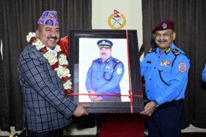 काठमाडाैं । प्रहरी महानिरीक्षक दिपक थापाले प्रहरी सेवाबाट हालै सेवानिवृत्त भएका प्रहरी अतिरिक्त महानिरीक्षक लालमणी आचार्यलाई आइतबार नेपाल प्रहरी प्रधान कार्यालयमा आयोजित कार्यक्रमबीच बिदाइ गरेका छन् ।