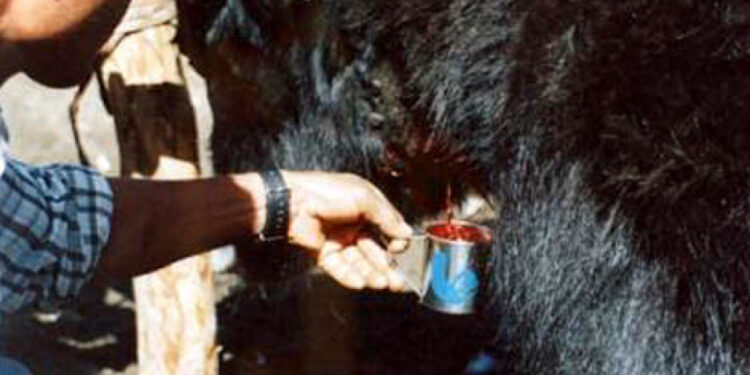 काठमान्डौ/मुस्ताङको थासाङ गाउँपालिका– २ बोक्सी खोलामा वैशाख आठ गतेदेखि सुरु भएको चौरीको आलो रगत पिउने मेलामा भीड लागेको छ । याक र चौंरीबाट आलो रगत निकालेर पिउने मानिसको भीड बढेको हो ।मेलामा मुस्ताङी भन्दा म्याग्दी, पोखरा, चितवन, नवलपरासी, तनहुँ, पर्वत, बुटवल, काठमाडौँबाट आउने धेरै छन् । रोग सञ्चो हुने विश्वासमा बच्चा, बिरामी, वृद्धसमेत बोक्सी खोलामा आएका स्थानीय गोविन्द शेरचनले जानकारी दिनुभयो । हिमाली खर्कमा चरेका चौँरीहरूले पाँचऔंले, निरमसी, जटामसी, यार्सागुम्बाजस्ता जडीबुटी खाने हुँदा त्यसको रगत सेवनले मानिसको पेटसम्बन्धी रोग निको हुने विश्वासले मानिस चौरीको आलो रगत पिउन आउने गरेका स्थानीयवासीले बताएका छन् ।