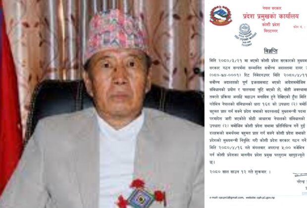 सर्वोच्चले दियो कोशीमा नयाँ सरकार गठन गर्न आदेश
